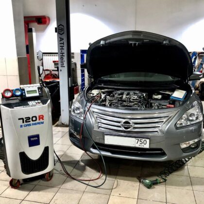 Закачка хладагента с с восстановлением и опрессовкой всей системы на НИССАН X-TRAIL.