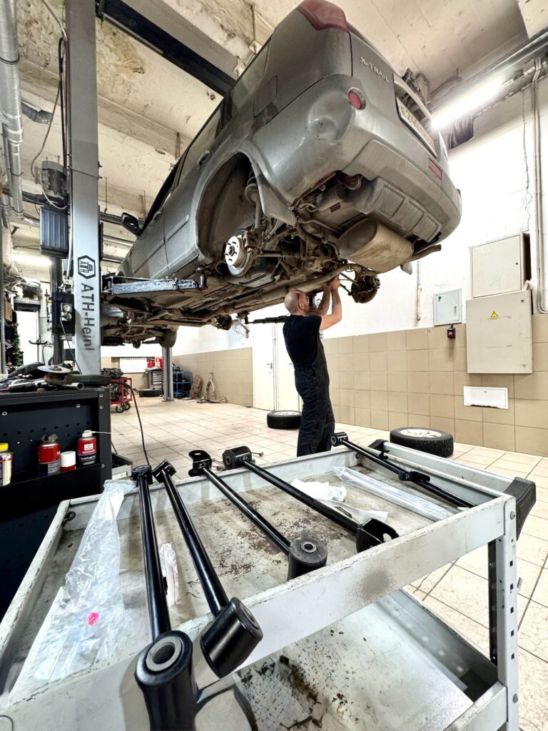 Восстановление подвески на пожилых машинах зачастую нетривиальная задача. Элементы требуют очень аккуратного демонтажа и тщательной и точной замены на новые. У нас большой опыт в таких случаях ремонта. Навигация по записямПредыдущаяПредыдущая запись:Замена фар головного света на Nissan X-TrailСледующаяСледующая запись:Обслуживание Nissan Murano с гибридным приводомПохожие записиЗамена лобового стекла на Nissan и Infiniti16.10.2025Замена ступицы колеса на Nissan и Infiniti27.06.2025Ремонт Вариатора Jatco JF011E (RE0F10A)25.04.2025Промывка кондиционера при замене компрессора13.03.2025Обслуживание Nissan Murano с гибридным приводом25.02.2025Замена фар головного света на Nissan X-Trail28.01.2025